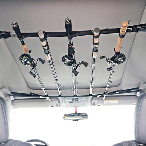 Dzięki tym uchwytom na wędki możesz łatwo zabrać swoje wędki do samochodu bez ryzyka obrażeń. Jeden uchwyt jest przymocowany do przednich uchwytów dachowych, a drugi do tylnych uchwytów dachowych nad tylnymi siedzeniami. Następnie możesz przymocować wędki do sufitu dzięki regulowanym pętlom, które są zapinane na rzep. Uchwyty mają po pięć pętli, co daje miejsce na pięć wędek. Ponieważ są przymocowane do sufitu, masz również dużo miejsca na inny sprzęt wędkarski i opakowanie.