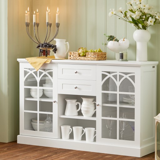 Przechowuj ładną zastawę stołową i dekoracje za szklanymi drzwiami, aby chronicznie je przed kurzem i eksponować ich piękno.