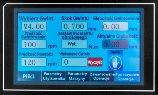 Ramię gwintujące zostało wyposażone w dotykowy panel sterujący z menu dostępnym w języku polskim, angielskim i niemieckim.
