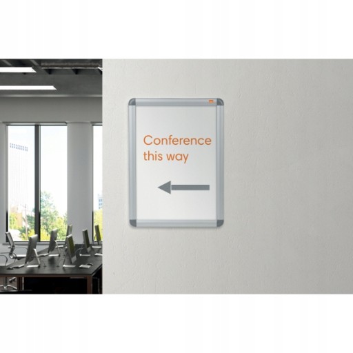 - Wygląd dopasowany do ram ściennych Nobo Clip zapewnia możliwość utworzenia kompletnego systemu prezentacji