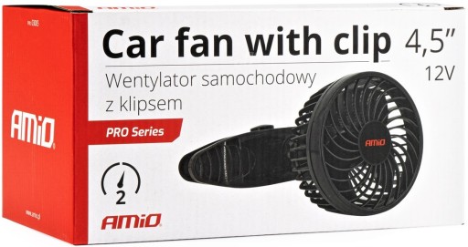 AMiO PRO WIATRAK WENTYLATOR SAMOCHODOWY ZASILANY Z ZAPALNICZKI SAMOCHODOWEJ 12V MOCOWANY NA KLIPS