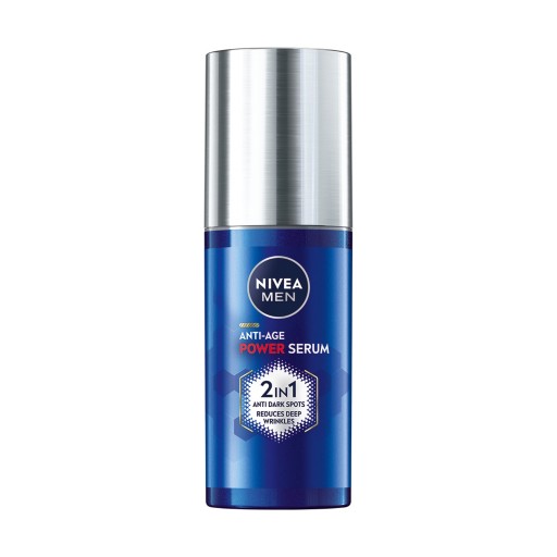 NIVEA MEN ANTI-AGE POWER INTENSYWNE SERUM PRZECIW PRZEBARWIENIOM łączy kwas hialuronowy z opatentowanym składnikiem LUMINOUS630®, aby zapewnić zaawansowaną redukcję przebarwień i działanie przeciwzmarszczkowe. Ultra lekka i szybko wchłaniająca się formuła, stworzona specjalnie z myślą o męskiej skórze, zapewnia 24h nawilżenia. Zmniejsza wielkość i widoczność przebarwień: -posłonecznych -związanych ze starzeniem się skóry Młodszy wygląd skóry już w 2 tygodnie. 10 lat badań i przełomowa innowacja. Naukowcy z Centrum Badań NIVEA® w ciągu 10 lat intensywnych poszukiwań i testów przebadali ponad 50 000 składników, by odkryć przełomowy, wysoce skuteczny LUMINOUS630®, który działa na poziomie komórkowym. W widoczny sposób redukuje przebarwienia oraz zapobiega ich ponownemu pojawianiu się. Produkt delikatny dla skóry. Odpowiedni dla każdej karnacji oraz typu skóry, w tym wrażliwej.