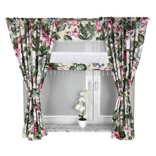 Zasłony wykonane są z wysokiej jakości tkaniny o delikatnym wzorze kwiatowym, które dodaje pomieszczeniu świeżości i przytulności. Ich piękny motyw kwiatowy wprowadza do wnętrza naturę i piękno przyrody, tworząc wyjątkową atmosferę spokoju i harmonii.