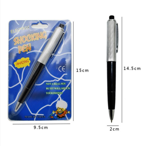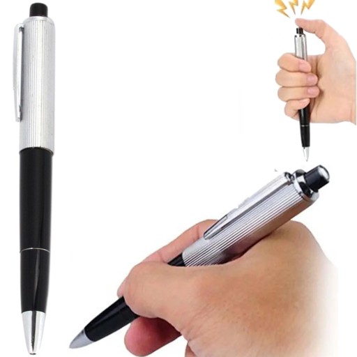 Długopis który razi prądem każdego, wciśnięcie przycisku na górze uwolni ładunek elektryczny. Świetny gadżet do robienia psikusów w biurze. Prąd rażenia jest zbyt mały, aby komukolwiek zaszkodzić.