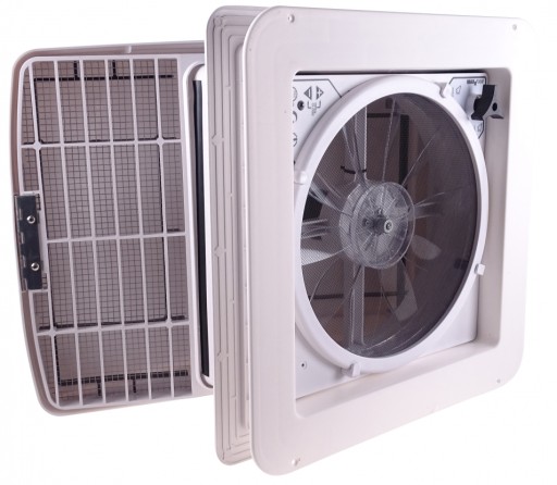 Okno dachowe z wentylatorem firmy Airxcel o wymiarach 40x40 cm świetnie sprawdzi się w każdym kamperze lub przyczepie. Wentylatora można używać przy każdej pogodzie, ponieważ ma wbudowaną osłonę przeciwdeszczową. Wydajny układ wentylacyjny zapewnia perfekcyjny przepływ powietrza. Aby zapewnić komfort i wygodę, urządzenie MaxxFan Deluxe posiada wbudowany termostat, który utrzymuje wymaganą temperaturę. Obrotowy wentylator jest zintegrowany z oknem dachowym oraz posiada możliwość dowolnej regulacji za pomocą pilota.