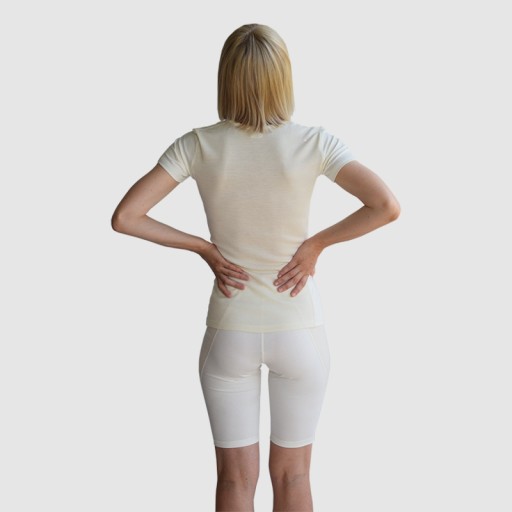 Damska koszulka Woolmed o dopasowanym kroju i lekko wydłużonym tyle zapewnia wyjątkowy komfort na co dzień, jak i podczas wysiłku fizycznego. Bambusowy przód świetnie przepuszcza powietrze. Przedłużony tył z wełny merynosowej przyjemnie ogrzewa cały kręgosłup, chroniąc jego dolne partie.