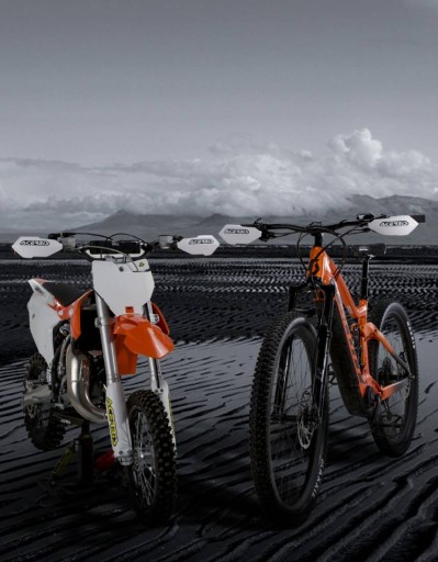 - handguard chroniący dłonie (gałęzie, gruz, zimno itp.) oraz jednostki sterujące kierownicą E-Bike/MTB/Minicross