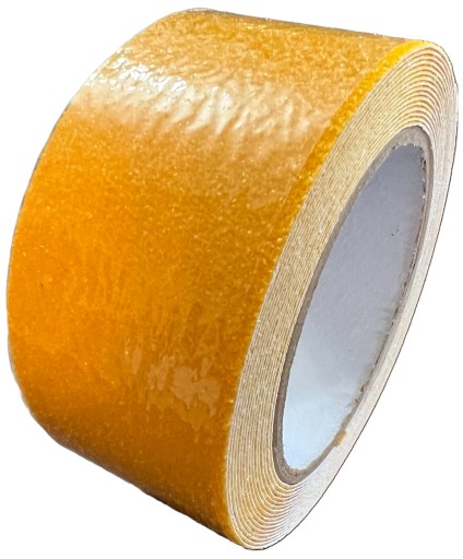 Taśma wykonana jest z materiału antypoślizgowego, trudno-ścieralnego. Taśma ta pod całą swoją powierzchnią posiada klej samoprzylepny, dzięki temu jest łatwa w montażu.