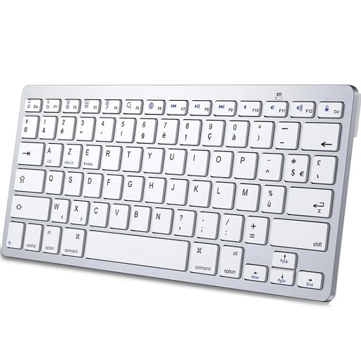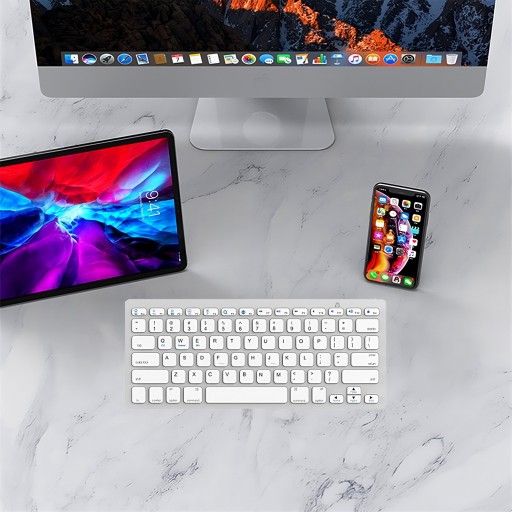 - klawiatura bezprzewodowa Bluetooth w kolorze srebrno-białym