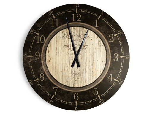 Zegar ścienny w stylu retro, loft jest idealnym rozwiązaniem dla nowoczesnych, jak i klasycznych wnętrz. Grafika została wydrukowana na płycie HDF o grubości 3mm. Zastosowany druk UV jest odporny na zarysowania oraz światło słoneczne.