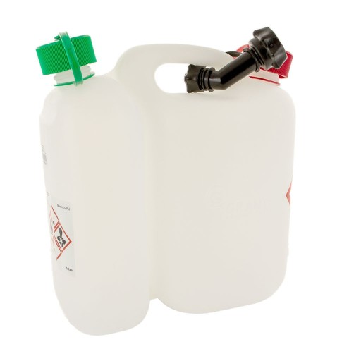 Wersja: -na 5,5 l mieszanki paliw i 3 l oleju łańcuchowego, biały/przezroczysty, dopuszczenie UN / BAM, z rurą wylewową