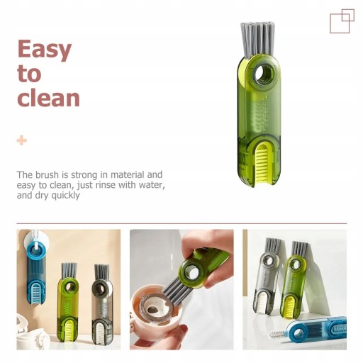 Charakterystyczna i wykwintna funkcja 3w1. Miniszczotka do butelek może dokładnie usunąć rogi, szczeliny i plamy z pokrywek kubków