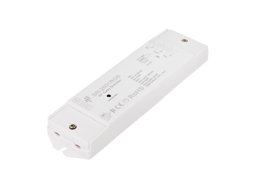 Obsługujący 1 strefę. Kompatybilny ze sterownikiem SR-2501RGB o maksymalnej mocy 3 x 5 A.