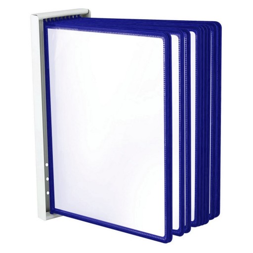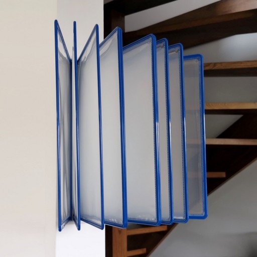 Odkryj nowy wymiar prezentacji! Ramki informacyjne A4 Leviatan NIEBIESKIE 10szt na metalowym naściennym uchwycie to idealne rozwiązanie dla Twojej Firmy, które pozwoli na pionową prezentację różnego rodzaju dokumentów w biurze, zakładach produkcyjnych, warsztatach, szpitalach, supermarketach czy restauracjach.