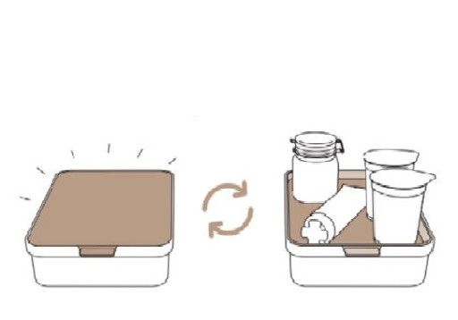 Na zdjęciach poniżej zamieszczamy przykładową aranżację produktu wraz z pozostałymi pojemnikami z linii CAUMA.