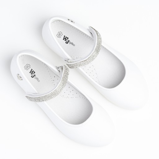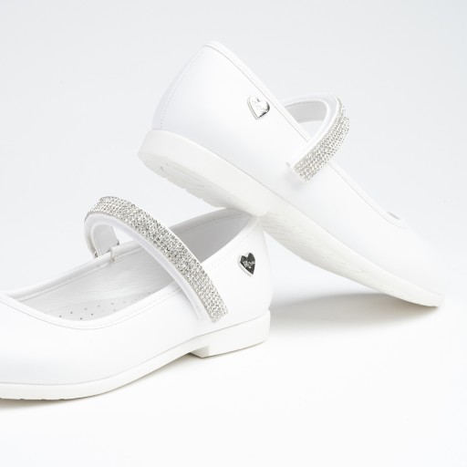 -matowa biała cholewka wraz z paskiem z cyrkoniami oraz subtelnym serduszkiem spodoba się każdej dziewczynce