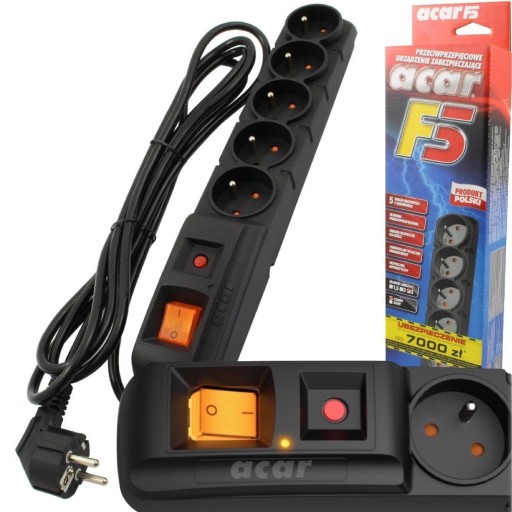 ACAR F5 - Listwa z Filtrem Przeciwprzepięciowym, 5gniazd /5m /czarna