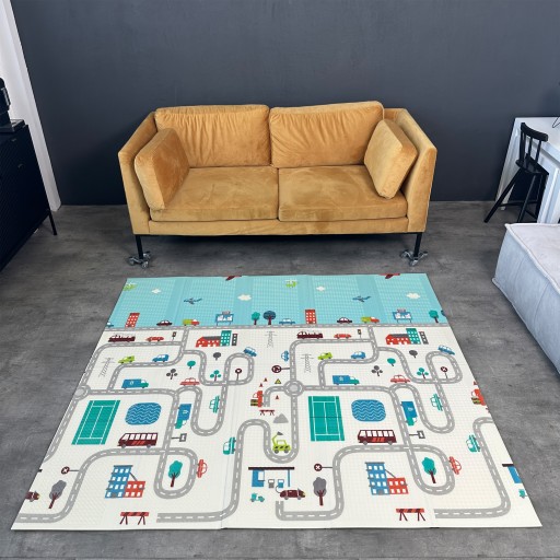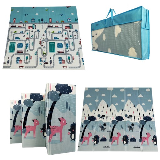 BodyNetics KIDs Mata Piankowa XXL 200 x 180cm Składana + Pokrowiec Dwustronna (1: LAS / 2: MIASTO). Certyfikaty Bezpieczeństwa CE, SGS, TUV, EN-71