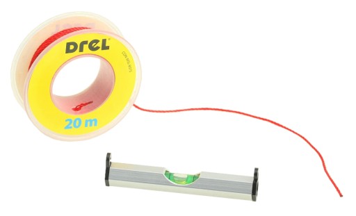 - W zestawie znajduje się poziomnica oraz sznurek w szpuli o długości 20 m.