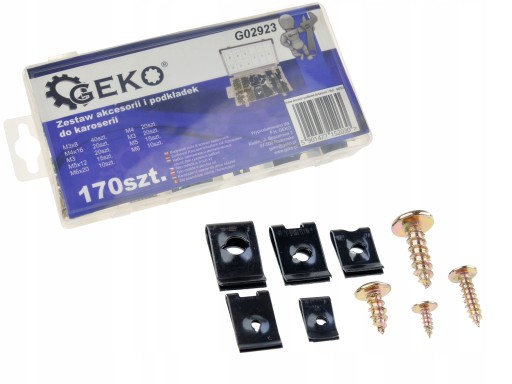 Zestaw wkrętów i podkładek do karoserii. W zestawie wkręty M3, M4, M5, M6 wraz z podkładkami.