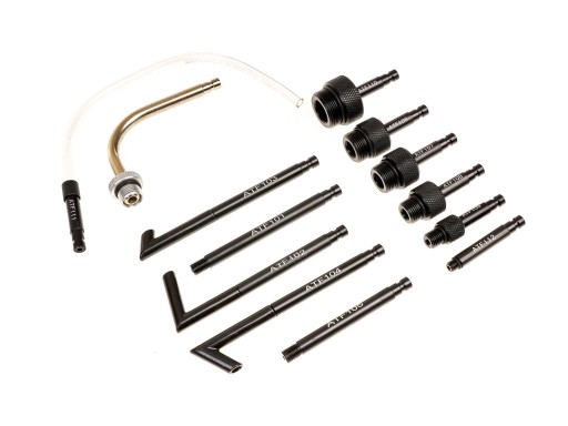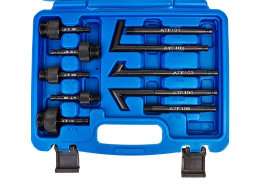 Zestaw 13 adapterów do wymiany i nalewania oleju do automatycznych skrzyni biegów. Pasują do większości samochodów na rynku.