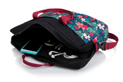 Z tyłu znajduje się druga pojemna kieszeń zamykana na rzep, w której zmieścimy dokumenty w formacie A4 oraz inne drobiazgi.