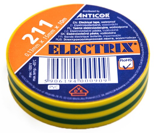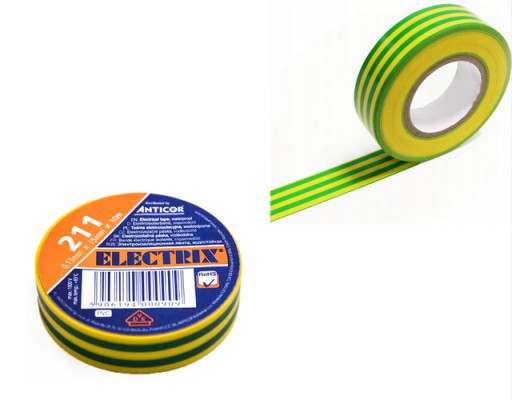 Taśma elektroizolacyjna PCW 15mm x 10m wodoodporna Anticor 211 żółto zielona