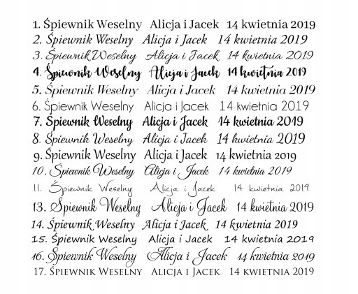 Przykładowy rodzaj czcionek: