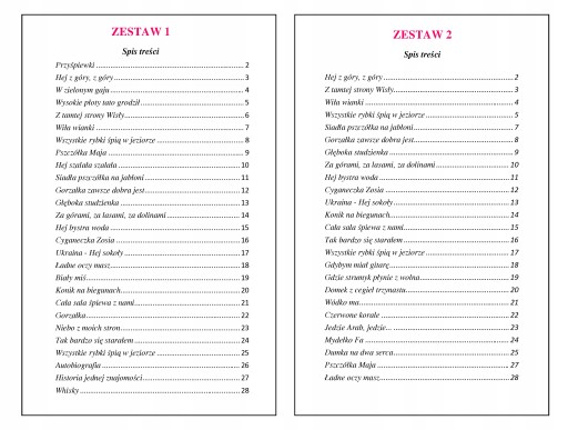 Spis treści (jeden zestaw do wyboru, możliwość drobnej modyfikacji piosenek)