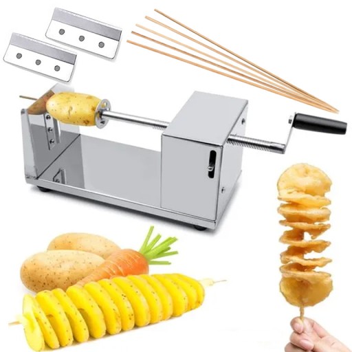 Maszynka ręczna przeznaczona do przygotowania zakręconych ziemniaków, znanych na całym świecie jako spring potato lub twisted potato. Sprawdzi się również przy przyrządzaniu innych warzywnych przekąsek w kształcie spirali.