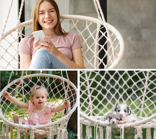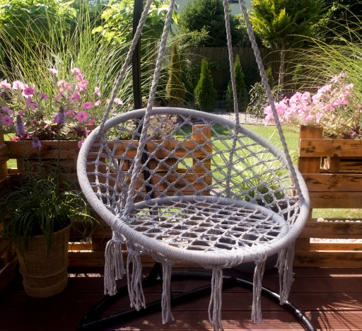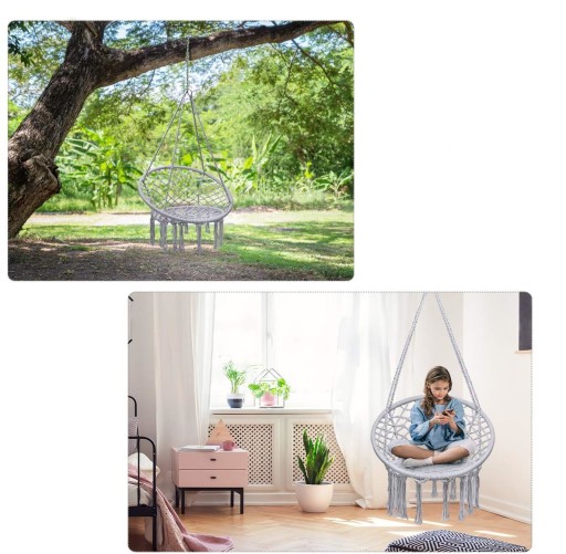 Dzięki połączeniu nowoczesnego designu z elementami boho, nasz fotel wiszący staje się unikatowym przedmiotem, który z pewnością przyciągnie spojrzenia i zachwyci zarówno domowników, jak i gości.