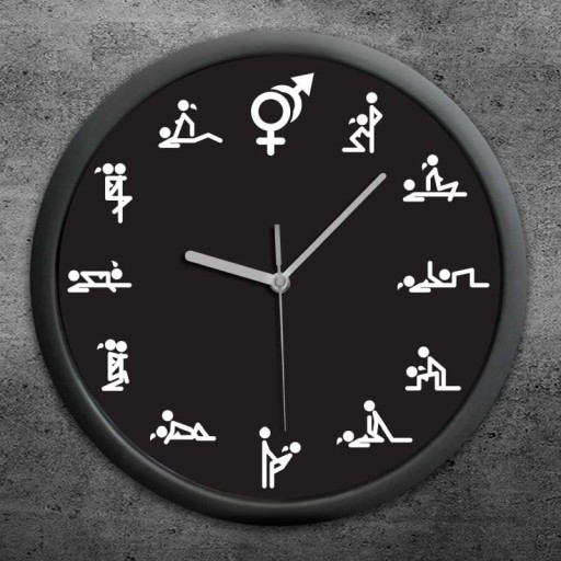 Zegar ścienny z pozycjami seksualnymi zamiast cyfr.