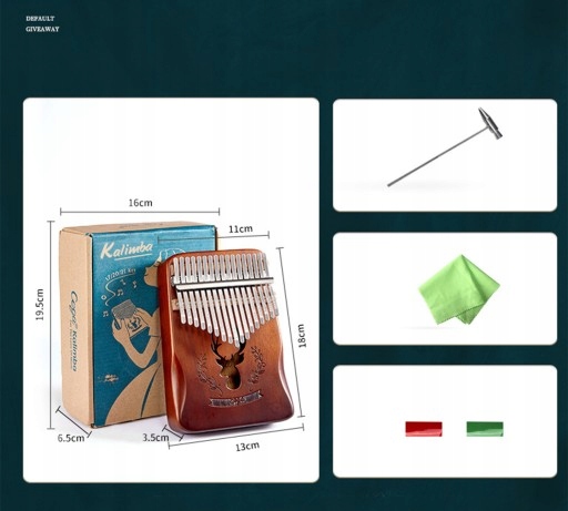 【Pakiet zawiera】1x Kalimba, 1x Młotek stroikowy, 1x Instrukcja, 1x Ściereczka do wycierania, 1x Zielona naklejka, 1x Czerwona naklejka, 1x Pudełko.