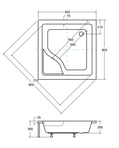 ⬇️Brodzik - rysunek techniczny - sprawdź czy ten rozmiar pasuje do Twojej łazienki ↕ ↔