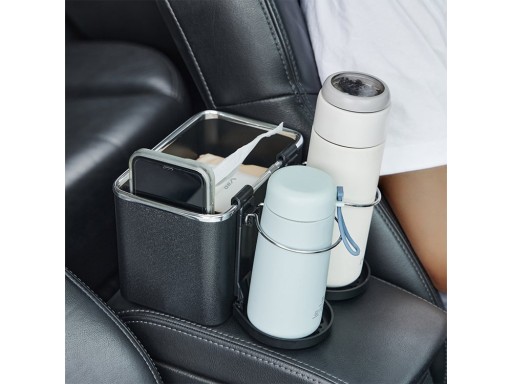Wyposażony został w przegródki na kubki, telefon oraz pudełko chusteczek. Sprawi, że nie unikniesz problemu z przewracającymi się napojami podczas jazdy. Dodatkowo, znajdziesz tu miejsce na drobne przedmioty, takie jak klucze, długopisy czy drobne przekąski.