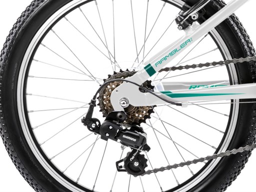 Rambler Kid to chłopięcy model roweru, który został wyposażony w najprawdziwszy amortyzator. prawie taki sam jak w rowerach dla dorosłych. Wygodny i solidny, czyli taki jaki powinien być rower dziecięcy. W Ramblerze mamy prosty w obsłudze napęd Shimano Tourney. Do obsługi 6 biegów służy intuicyjna manetka Revoshift. Taki sposób ułatwi młodemu rowerzyście naukę użytkowania przerzutki i korzystania z jej przełożeń. Rambler 20 Kid 2 występuje w dwóch kolorach: biało-szmaragdowym oraz czarno-zielono-pomarańczowym.