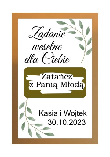 Przedmiotem oferty jest zestaw 5 sztuk zdrapek z zadaniami weselnymi. Jest to świetny pomysł na rozluźnienie i super zabawę dla Państwa gości weselnych.