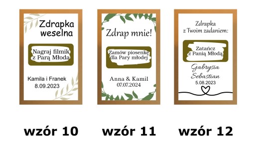- Wybranego wzoru (w przypadku nie podania wzoru zdrapki zostaną wykonane takie jak na pierwszym zdjęciu aukcji).