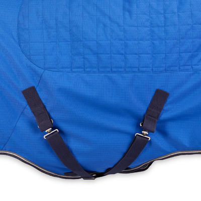 Do ochrony ogolonego konia w boksie przy niskich temperaturach. Zróżnicowane strefy ocieplenia. Derka Stable 200 jest cieplejsza na grzbiecie, ponieważ jest to najwrażliwsza i najbardziej narażona na przeciągi część ciała konia przebywającego w boksie.