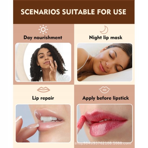 ▶ Jest bogaty w naturalne składniki nawilżające i odżywcze, które mogą utrzymywać usta wilgotne i piękne przez długi czas bez martwych punktów, naprawiać suche usta i odtwarzać miękkie i gładkie usta.