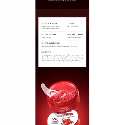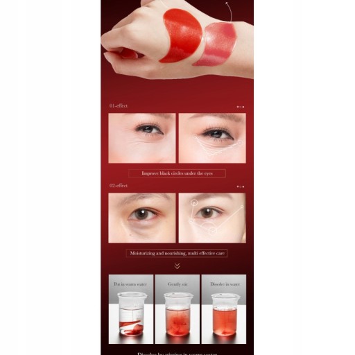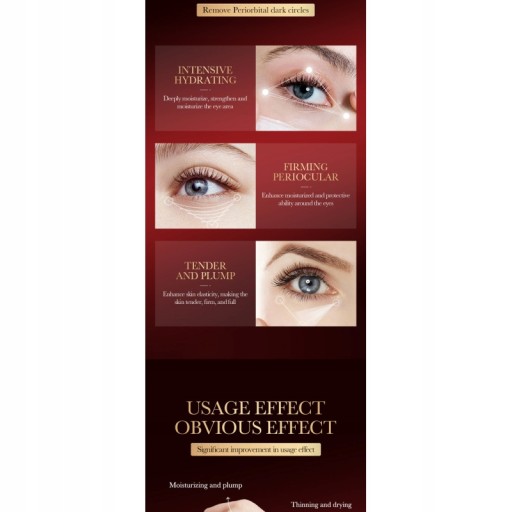 Skuteczność produktu. Poprawić oczy pandy, ciemne oczy, worki pod oczami.