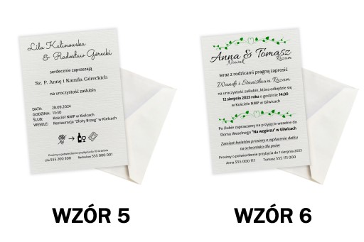W przypadku nie podania tych informacji i braku kontaktu z kupującym zostaną wysłane po 5 dniach roboczych zaproszenia z pustymi miejscami do wypełnienia odręcznego.