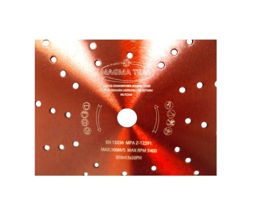 Zęby tarcz posiadają 25% diamentu syntetycznego, które prawidłowo rozmieszczone w segmencie powodują efektywny wzrost szybkości cięcia.