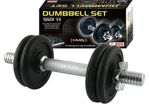 Hantla regulowana 7 kg SG01 to przyrząd do ćwiczeń siłowych, który obowiązkowo powinien znaleźć się w każdej domowej siłowni. Możliwość dopasowania ciężaru do wykonywanych ćwiczeń i swoich możliwości sprawia, ze jest to jeden z najbardziej uniwersalnych sprzętów do przeróżnych zastosowań. Ciężarek regulowany SG01 7kg HMS to w praktyce komplet akcesoriów, w skład którego wchodzą: dwa talerze żeliwne o wadze 1 kg, dwa talerze żeliwne o wadze 1,25 kg oraz stalowy gryf o wadze 2,5 kg. Maksymalna waga hantli po założeniu wszystkich ciężarów wynosić może łącznie 7kg. Talerze o niewielkich masach pozwalają precyzyjnie dobrać wagę ciężarka do swoich potrzeb. Talerze mocowane są na gryfie z pomocą dwóch dołączonych zacisków, które stabilnie i mocno przytrzymają obciążenia na miejscu. Obciążenie regulowane 7kg HMS SG01 to najlepszy wybór w tym zakresie cenowym.
