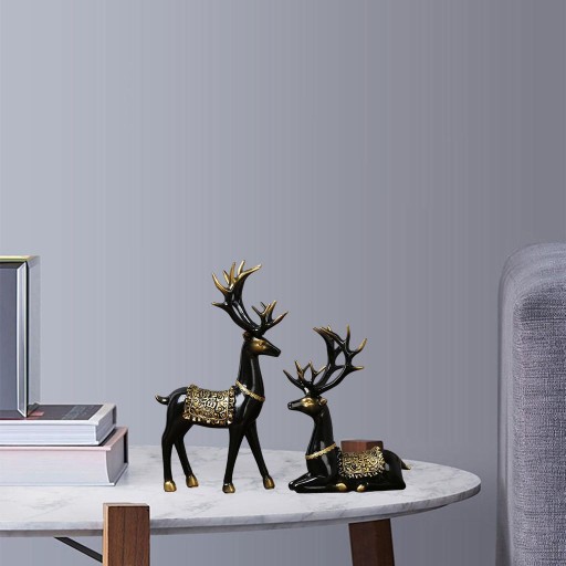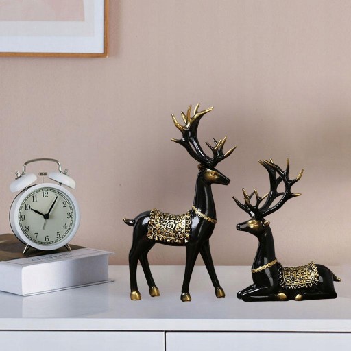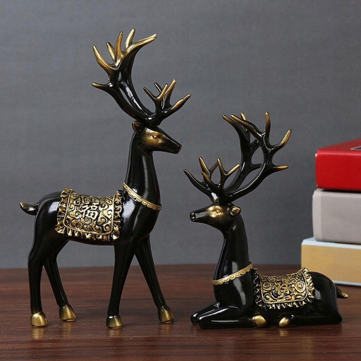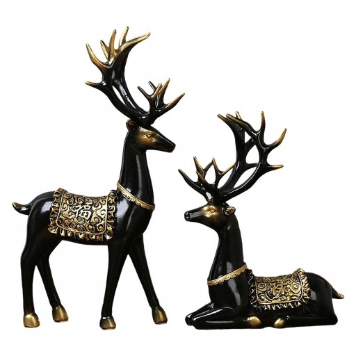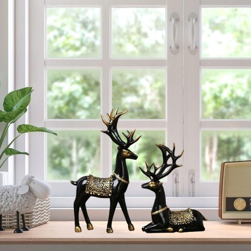 2 Szt. Para Jeleń Statua Rzeźba Salon Półka Na Książki Figurka Czarna
