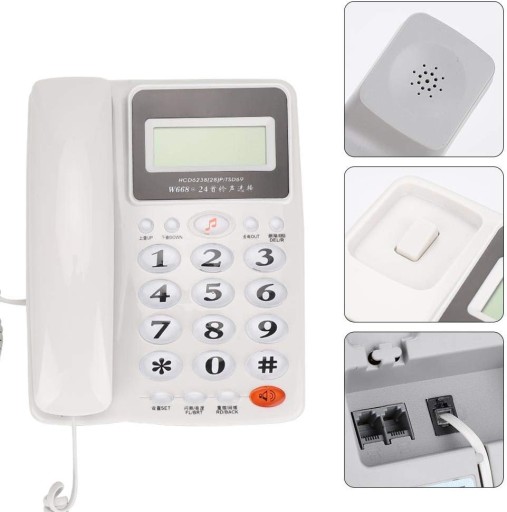 WYSOKA JAKO Telefon stacjonarny ma pikny wygld wygod prost obsug szybkie wybieranie dokadno lekko i trwao wyrane dzwonki i poczenia oraz wysok jako poczeń. ATWY W UYCIU Linia telefoniczna z wtyczk moe by normalnie uywana eliminujc potrzeb mudnych i niewygodnych kroków takich jak bateria i zasilanie niski poziom emisji dwutlenku wgla oszczdno energii i ochrona rodowiska. Nie jest potrzebna bateria dziaa bezporednio z prdem z linii telefonicznej bez zewntrznego róda zasilania oszczdno energii i ochrona rodowiska. PROJEKT SZCZEGóOWY Telefon stacjonarny musi mie maszyn z przodu nadajc si tylko do przeduenia do przeduenia przycisk z materiau o jakoci krysztaowej dobrze si czuje nie jest atwy do zaniku 4 podkadki antypolizgowe skutecznie zapobiegaj przesuniciu telefon. DUE PRZYCISKI Telefon stacjonarny ma due i szerokie przyciski atwe do odczytania znaki alfanumeryczne mona wyranie rozpozna odpowiedni dla osób starszych w domu Duy ekran duy wywietlacz czcionki atwe do odczytania informacje jasno ekranu mona regulowa 5 poziomów zgodnie z owietleniem otoczenia. PENA GWARANCJA Jestemy przekonani e nasz telefon stacjonarny zosta zaprojektowany i wykonany zgodnie z surowymi standardami jakoci aby zapewni najlepsz obsug klienta. Zapraszam do dzielenia si z nami przez email jeli masz jakiekolwiek problemy lub wtpliwoci. Ponadto jeli produkt bdzie mia jakiekolwiek problemy z jakoci zapewnimy usug zwrotu
