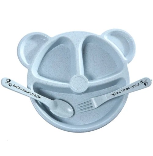 ДЕТСКАЯ ТАРЕЛКА ПЛЮС СТОЛОВЫЕ ПРИБОРЫ С УЗОРОМ МЕДВЕДЯ