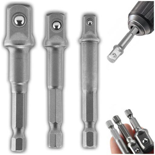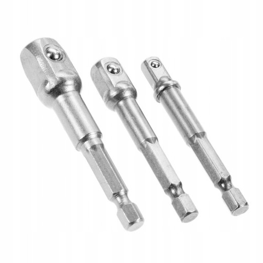 - 1x zestaw 3szt redukcji adapterów do wkrętarki 1/2, 1/4 oraz 3/8