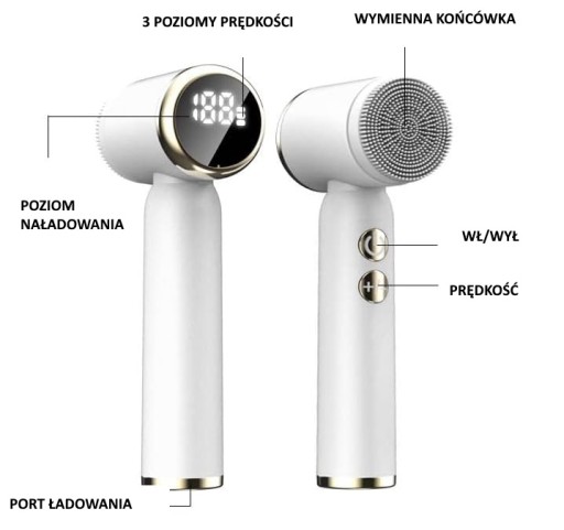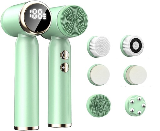 Innowacyjny system oczyszczania twarzy 6 w 1 z wyświetlaczem mocy LED to urządzenie do oczyszczania twarzy z sześcioma wymiennymi główkami szczoteczki o różnym kształcie i miękkości, przeznaczonymi do oczyszczania skóry za pomocą sześciu różnych czynności: