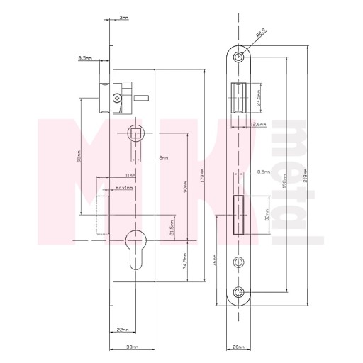 - zamek zapadkowo-zasuwkowy - wąski, rozstaw 90 mm, do furtek prawych i lewych